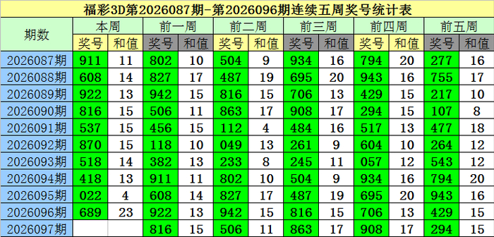 上期回顾:福彩3D第2026096期开奖奖号为:689,奖号类型为:组六,奖号冷温热态为:温号+温号+冷号。